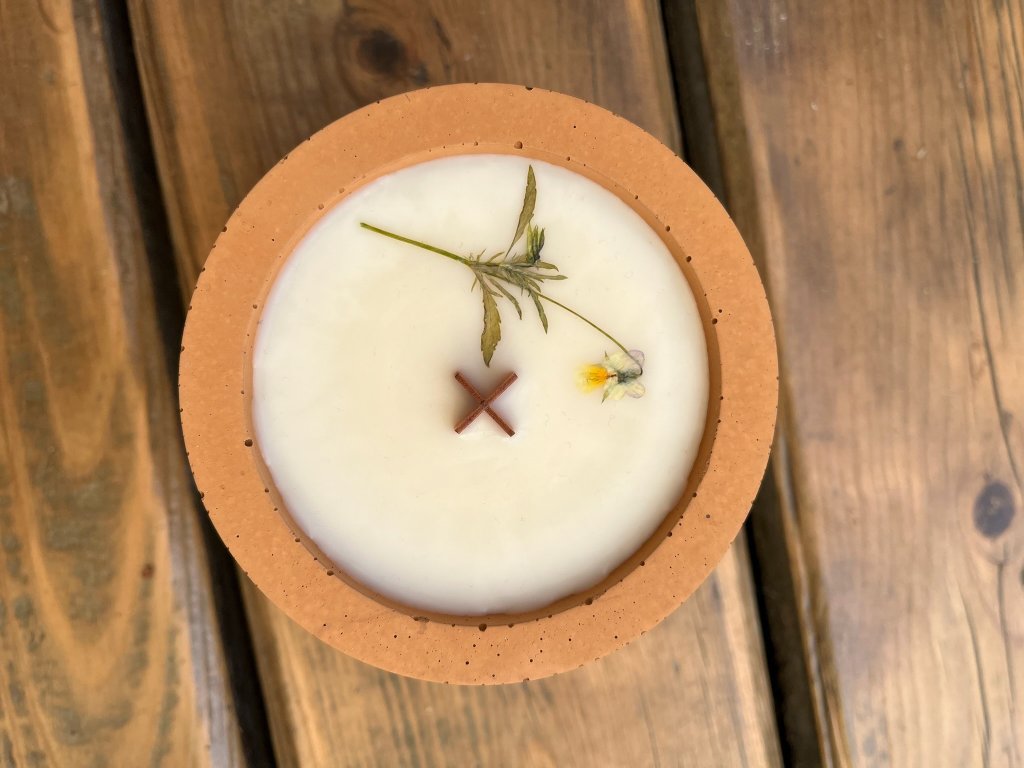 SLOŽENÍ: BETON, SÓJOVÝ VOSK, DŘEVĚNÝ KNOT, PŘÍRODNÍ VONNÝ OLEJ